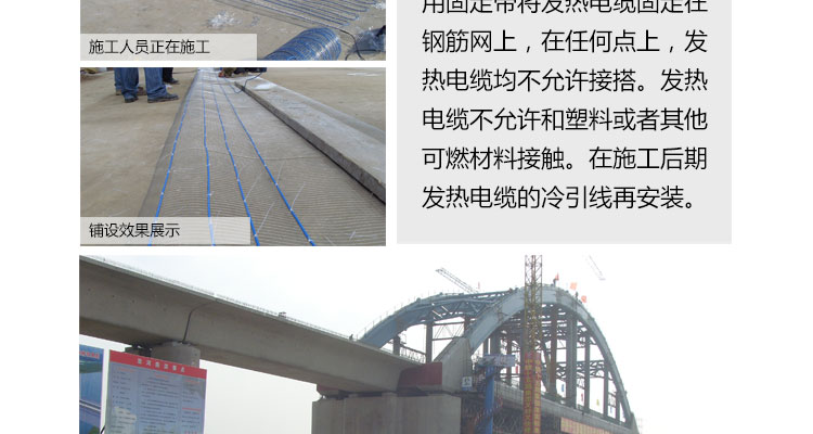 發熱電纜可以在新建筑的混凝土干燥與硬化中使用。縮短混凝土干燥時間,可以縮短 整個建筑工期,帶來很大的經濟效益。發熱電纜可以直接置于混凝土內,防止混凝土凍結,加速其硬化,即使在非常寒冷的季節,也可以三天就將模板撤掉。施工后期,重新接通發熱電纜電源,干燥整個建筑結構,并且在建筑過程中提供基本的供熱。