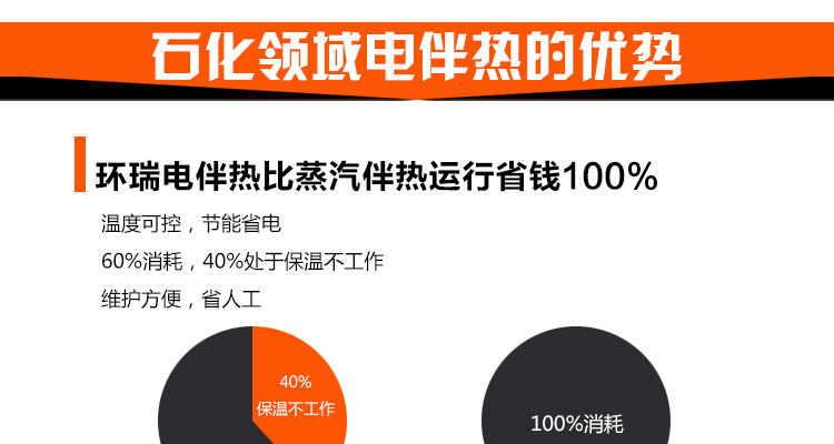 石化場所下的長距離管道,因輸送過程和長時間的儲存過程中會因散熱造成溫度下降,溫度的下降會使粘性物料的粘度升高,而對易結晶物料則可能使物料產生結晶,從而造成料液的輸送發生困難,嚴重的會造成管道系統的堵塞。為避免這種情況發生,必須對系統散失的熱量予以及時補充,即對系統進行連續不斷地加熱。 |